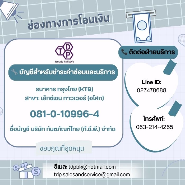 หมายเหตุ: กรุณาติดต่อเจ้าหน้าที่ของบริษัทฯ เพื่อสอบถามรายละเอียดเงื่อนไขการชำระเงิน หรือโปรโมชั่นเพิ่มเติม